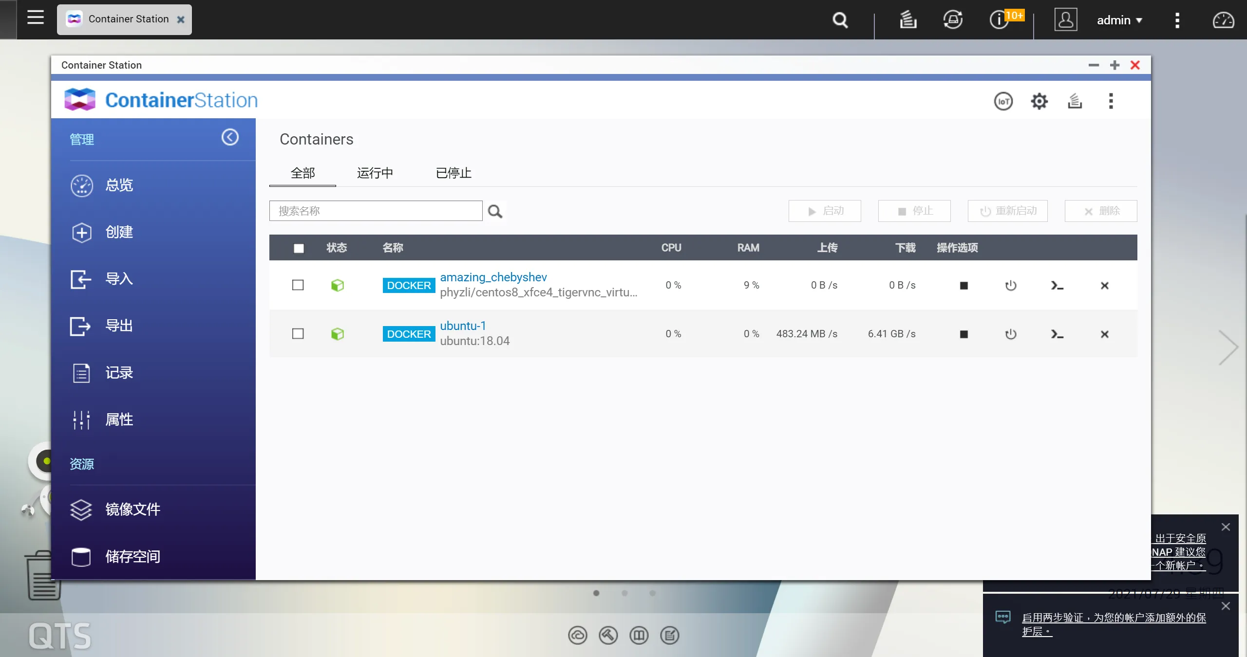 vncserver -geometry 1920x1080 :2- 或者docker run完成后用网页登陆QNAP打开container就可以看到运行的docker了,点击启动的那个,再进入控制台启动vnc